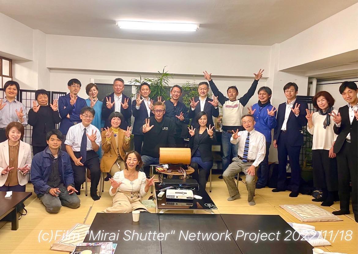 蒲田のシャッター通り商店街で空き家を「キネマフューチャーセンター」として再生するきっかけとなった映画「未来シャッター」を鑑賞し、多様なステイクホルダーが対話することによって、新しいつながりが更なるつながりを連ね、新たな安心な輪をつくり、未来に平和をもたらす大きな輪を生み出すイノベーションを起こす。